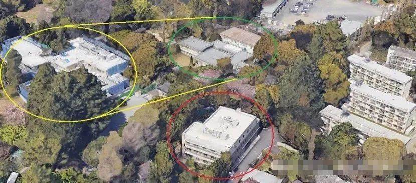 (黃圈建筑是秋筱宮家的主宅,紅圈是「臨時住所」,綠圈赤坂東官邸)